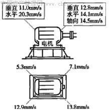 圖4   電機(jī)測(cè)點(diǎn)分布及振動(dòng)幅值